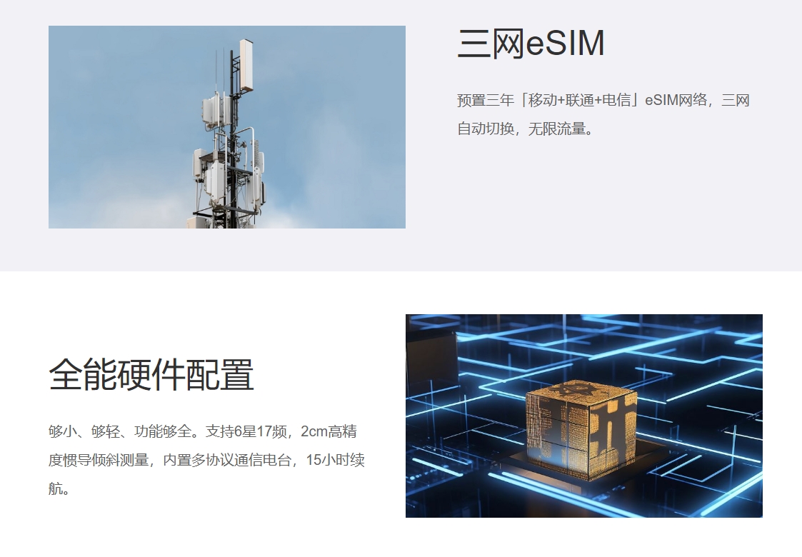 - 產品描述:千尋星矩A100,集成星地通服務實現全域全場景作業,為用戶帶來極致單機測量體驗。小機身下具備全功能硬件能力,使用戶作業效率再翻倍。