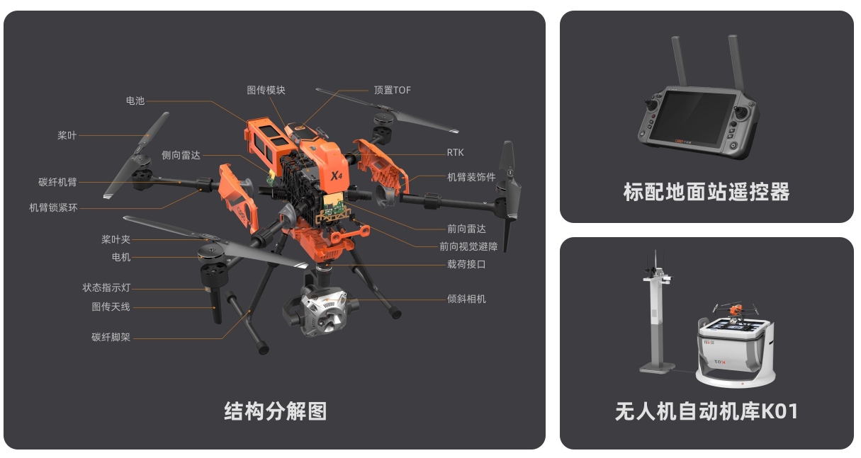 - 產品描述:千巡翼X4是一款全新研發的四旋翼輕型無人機。融合了飛行控制算法、相機處理算法、云臺增穩算法、視覺AI算法;集成了全向避障系統、高精度 RTK 系統、視覺定位系統;具備自動巡航、AI 智能識別與跟蹤、自動返航、自動精準降落等自主飛行能力,以及視覺輔助定位,視覺全向避障等功能,保障無人機更安全穩定地飛行。同時可選配衛星通訊模塊,實現全域暢聯。